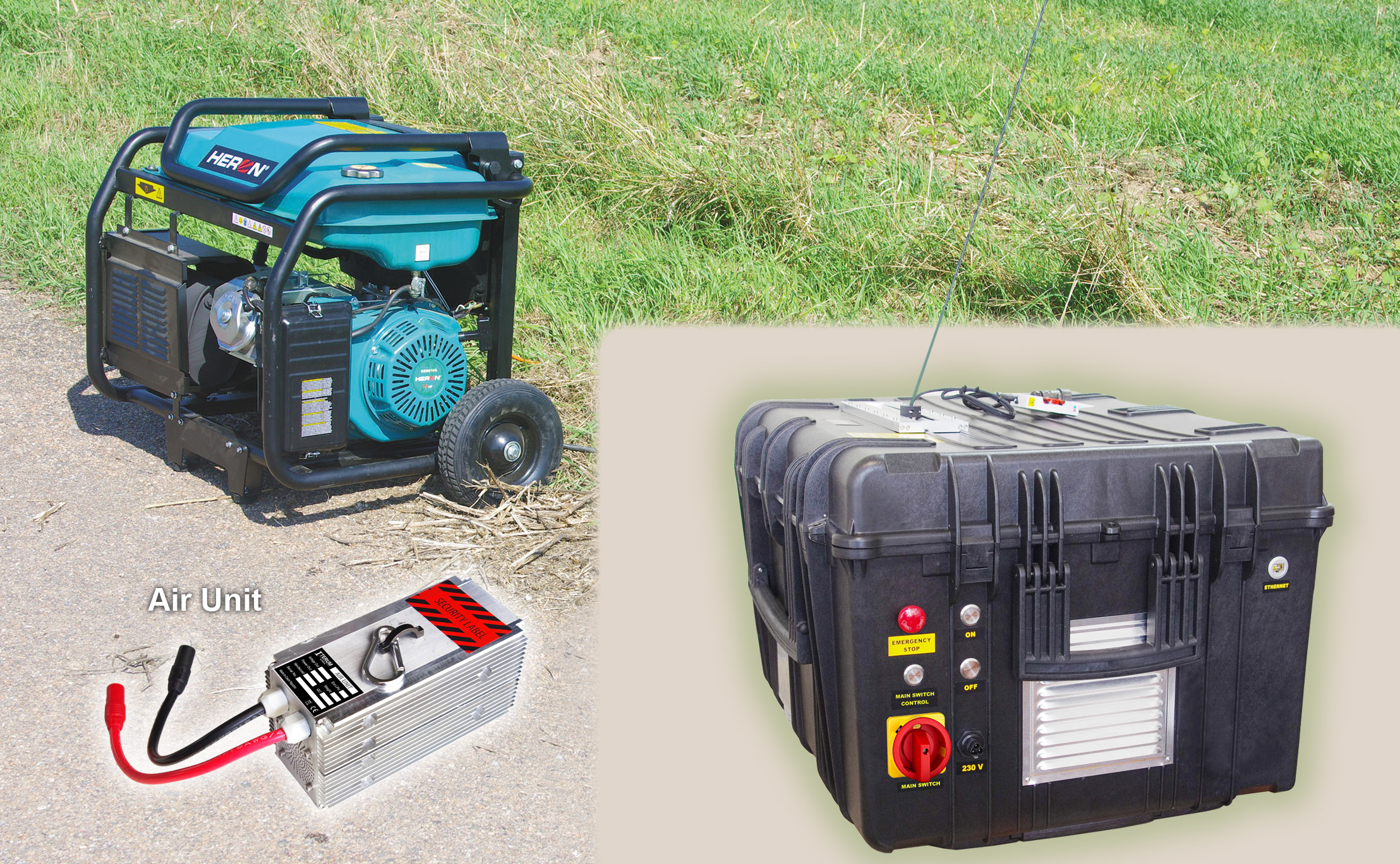 Air Unit 3-12S, working power to drone 2600W/49V, voltage on cable 800V.