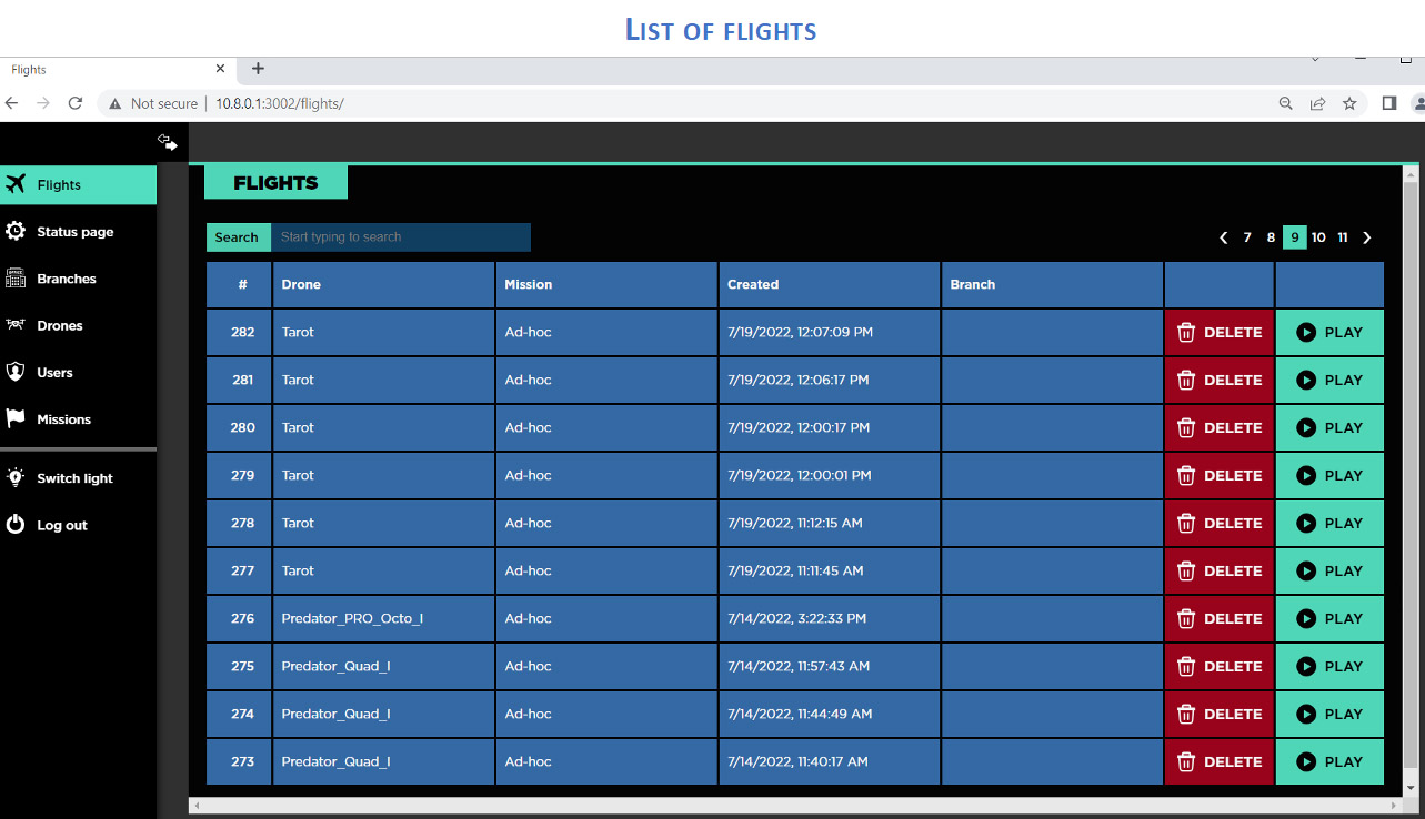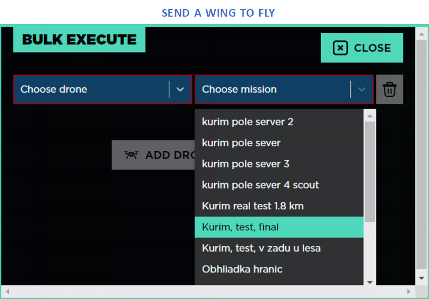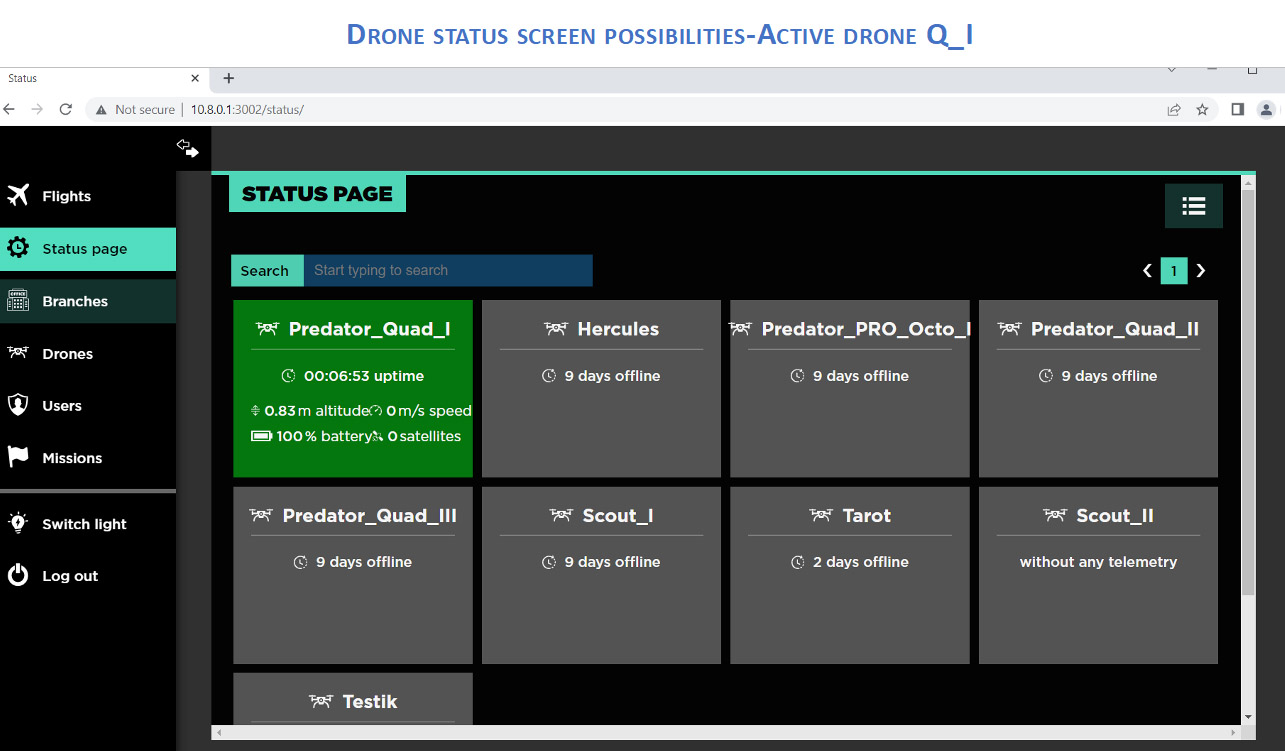 The Cloud Server also allows launching missions for an entire squadron of drones parallelly, so that once their missions are scheduled, all scheduled drones can be launched at once.