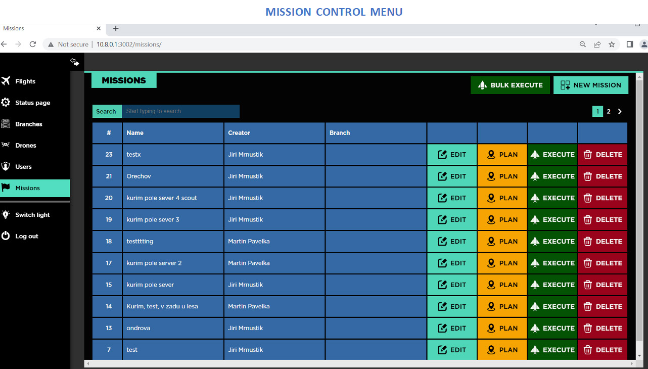 Cloud server also allows the operator to plan missions for individual drones and then launch those missions remotely.