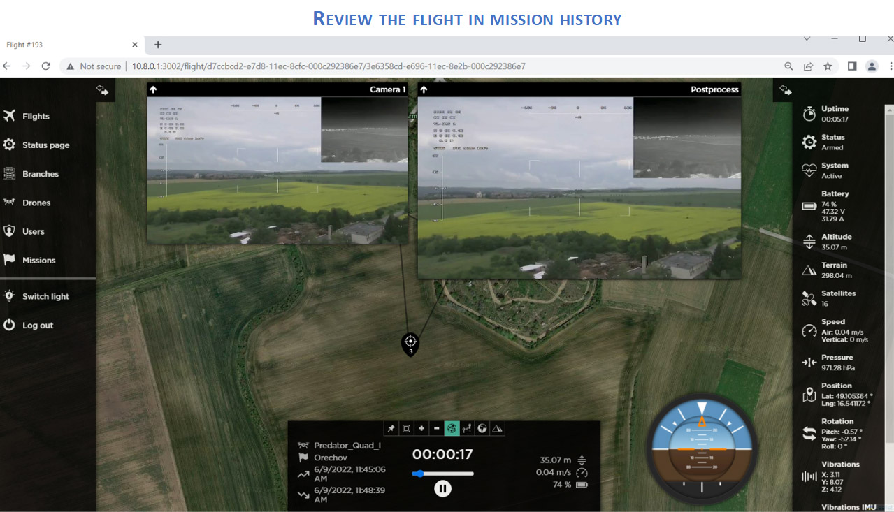 Everything is saved on the server and the operator can replay the entire flight at any time.