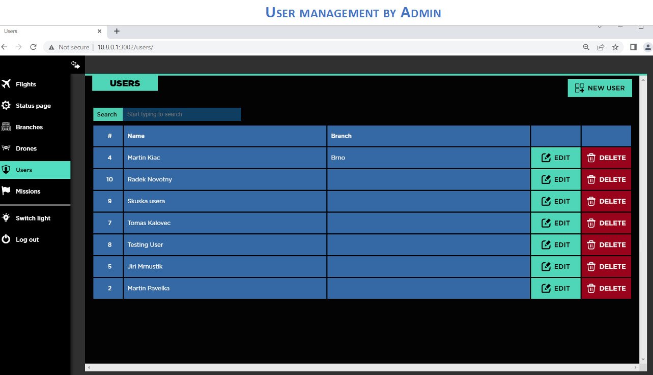 We have successfully introduced and demonstrated our own network for management of UAVs (unmanned aerial vehicles, drones) designed to enable long-distance autonomous and piloted flights beyond visual direct line visibility (BVLOS). The network is based on the communication of drones with a central Cloud server using 4G and 5G networks. Each an authorized operator can use a thin client (terminal, web browser) to control and check the drones that belong to him, or even entire squadrons (wings).