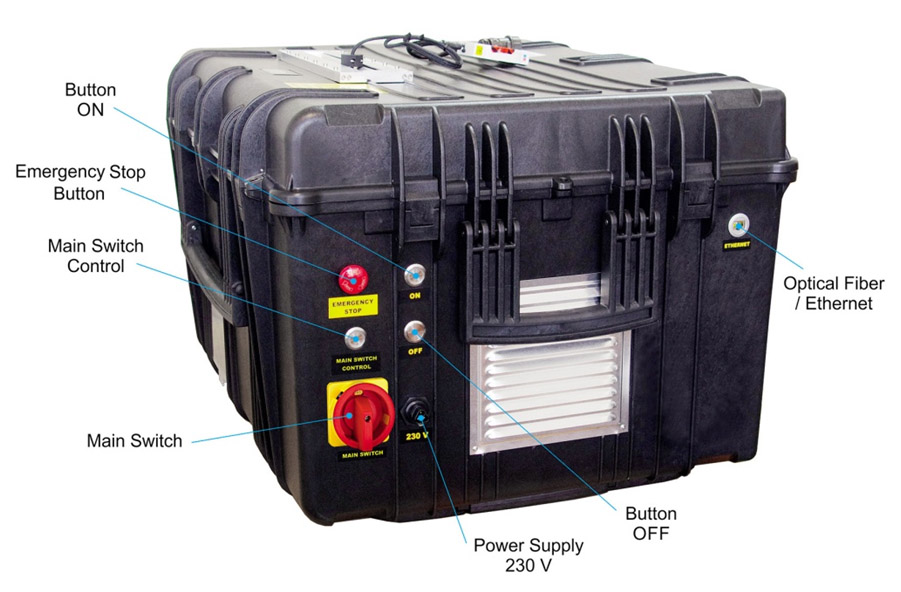 All functions of the Tethered Station are fully automatic, and the entire power station is controlled by a single ON and OFF buttons and also by Emergency Stop button. The Main switch serve for switching TS ON before work and OFF after work.